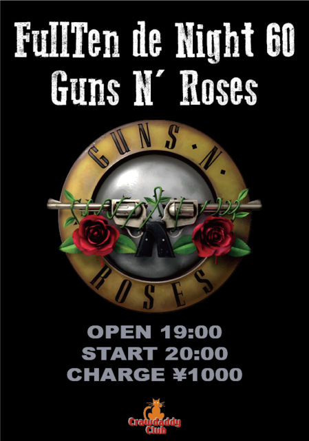 3/15 ËÜÆü¤ÏFullTen de Night 60Ìë¡¡ ¡ÖGunsN'Roses Night¡×¤Ç¤¹¡ª OPEN 19:00 START 19:00 CHARGE 1000±ß¡¡ ¥¢¥¯¥»¥ë»áÁª¶Ê¤Ë¤è¤ë¥¬¥ó¥º¤ÎÌë¤Ç¤¹¡£ ¤ª³Ú¤·¤ß¤Ë¡Á¡Á¡ª¡ª¡ª
