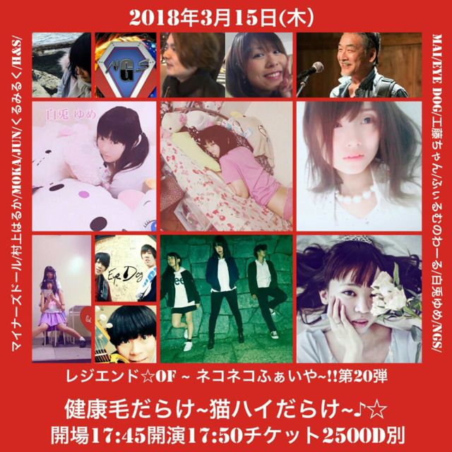 ¡Ö¥ì¥¸¥¨¥ó¥É¡ùof ~ ¥Í¥³¥Í¥³¤Õ¤¡¤¤¤ä~!!Âè20ÃÆ:·ò¹¯ÌÓ¤À¤é¤±~ǥϥ¤¤À¤é¤±~¢ö¡ù¡× Æü»þ:2018/3/15(ÌÚ¡Ë ²ñ¾ì:ÅìÃæÌîmusic shed YES!! (ÅìµþÅÔÃæÌî¶èÅìÃæÌ¡Ý£µ£¶¡Ý£¸¡¡ÆüÀ¸¥Ó¥ë£²F¡Ë³«¾ì:17:40 (16»þÆþ¤ê) ¥ê¥Ï¡¼¥µ¥ë16:00~17:20 ³«¾ì:17:40 ³«±é:17:45 ¥Á¥±¥Ã¥È:2500ÊÌD ¡¿·À¤µªT¡ùNY 17:45¡Á17:55 ¢¥Þ¥¤¥Ê¡¼¥º¥É¡¼¥ë 17:55¡Á18:20 £Â¼¾å¤Ï¤ë¤« 18:20¡Á18:45 ¤MOKA 18:45¡Á19:10 ¥JUN 19:10¡Á19:35 ¦ ¤¯¤ë¤ß¤ë¤¯19:35¡Á19:55 § H & S 19:55¡Á20:20 ¨ MAI 20:20¡Á20:45 © Eye Dog 20:45¡Á21:15 ª¹©Æ£¤Á¤ã¤ó 21:15¡Á21