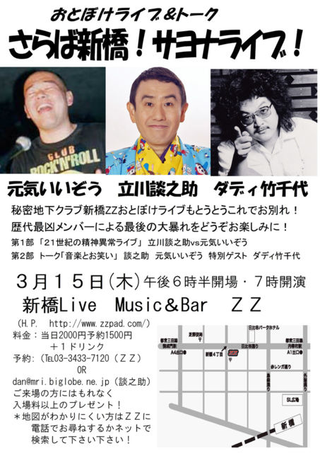 £Ú£Ú¤¬¥Ó¥ë¥ª¡¼¥Ê¡¼¤È¤Î¥È¥é¥Ö¥ë¤Ç¥Ó¥ë¤òÄɤ¤½Ð¤µ¤ì¤ë¤Î¤Ç¿·ÇܺǸå¤Î¥é¥¤¥Ö¤È¤Ê¤ê¤Þ¤¹¡£ ºÇ¸å¤ÃÕû¤È¤·¤ÆÃÌÇ·½õ¡õ¸µµ¤¤¤¤¤¤¾¤¦¤Î¥Î¡¼¥ê¥ß¥Ã¥È¤Î21À¤µª¤ÎÀº¿À°Û¾ï¼Ô¥é¥¤¥Ö¤È£Ú£Ú ¥ª¡¼¥Ê¡¼¡¢¥À¥Ç¥£ÃÝÀéÂ夵¤ó¤â¸ò¤¨¤Æ²û¤«¤·¤Î²»³Ú¤È¤ª¾Ð¤¤¤Î¥È¡¼¥¯¤ÇÀ¹¤ê¾å¤¬¤ê¤¿¤¤¤È »×¤¤¤Þ¤¹¡£¤µ¤è¤Ê¤é¥Ñ¡¼¥Æ¥£¡¼¤È¤ªÊõ¥×¥ì¥¼¥ó¥È¤â¤¢¤ê¤Þ¤¹¤Î¤ÇÀ§Èó¤´Íè¾ì²¼¤µ¤¤¡£ ¡¡¤ª¤È¤Ü¤±¥é¥¤¥Ö¡õ¥È¡¼¥¯¡Ø¤µ¤é¤Ð¿·¶¶¡ª¥µ¥è¥Ê¥é¥¤¥Ö¡Ù Â裱Éô£²£±À¤µª¤ÎÀº¿À°Û¾ï¥é¥¤¥Ö¡¡Î©ÀîÃÌÇ·½õ¡¡¸µµ¤¤¤¤¤¤¾¤¦ Â裲Éô¡¡¥È¡¼¥¯²û¤«¤·¤Î²»³Ú¤È¤ª¾Ð¤¤¡¡¥²¥¹¥È¡¡¥À¥Ç¥£ÃÝÀéÂå Æü»þ¡§£³·î£±£µ