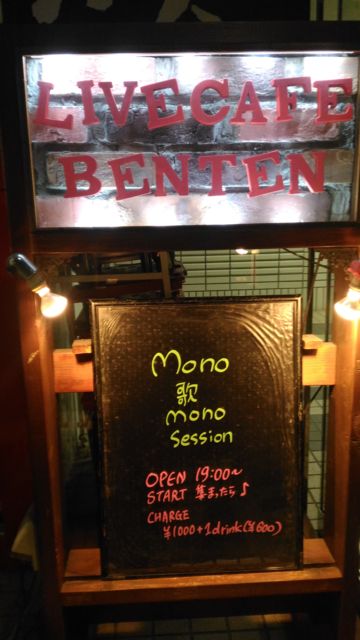 今回も楽しんでいただけたら幸いです!(≧∇≦) 新中野 Live Cafe 弁天 http://www.benten55.com/ Open 19:00 Start 面子が揃い次第 Close 22:30 Charge 1000円+1drink 今回のホストは ・み〜たんさん ・宮脇俊郎さん ・mono ある程度は譜面を用意しますが 歌いたい、やりたい、曲がありましたら譜面を4部程用意して頂ければ 難曲以外は出来ると思います。 また、リクエストがあればこちらに書いて下さい。 出来る限りやれるよう努力します。 オーナーのふくちゃんからは居酒屋セッションと命名されましたが それは弁天の美