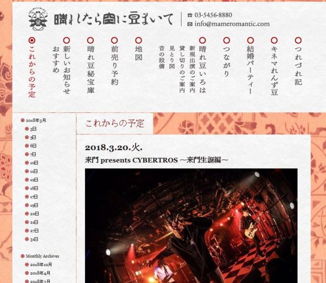 Mar 20¡¡2018 ÍèÌç presents CYBERTROS -ÍèÌçÀ¸ÃÂÊÔ- LIVE¡¡¡§ 2018.03.20 [Tue] Âå´±»³ À²¤ì¤¿¤é¶õ¤ËƦ¤Þ¤¤¤Æ ACT¡¡:¡¡ROS¡¡ and more... TIME¡¡:¡¡³«¾ì : 18:00/ ³«±é : 18:30 TICKET¡¡¡§Á°Çä : \3,500/ ÅöÆü : \4,000 ROS¤µ¤ó¤ÎWEBSITE¤Ç¤Ï¼õÉդϽªÎ»¤¤¤¿¤·¤Þ¤·¤¿¡£ Âå´±»³ À²¤ì¤¿¤é¶õ¤ËƦ¤Þ¤¤¤Æ //ƦÉ÷¥é¥¤¥Ö¥Ï¥¦¥¹¤Ï¡¢¤³¤Á¤é http://mameromantic.com/ MAP¡ä¡ä¡ähttp://mameromantic.com/?cat=6 ¤ï¤¯¤ï¤¯¤·¤Þ¤¹¤Í¡£¤É¤ó¤Ê°ìÌë¤Ë¤Ê¤ë¤Î¤Ç¤·¤ç¤¦¤«