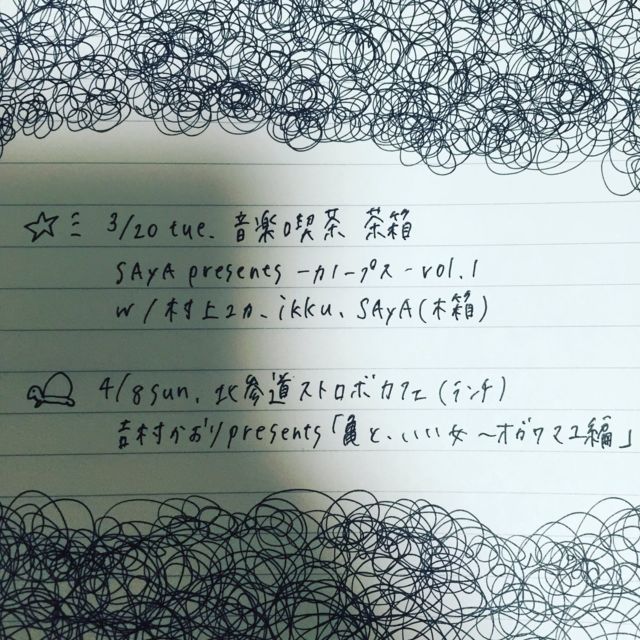 2018/3/20(TUE)¥ª¥¬¥ï¥Þ¥æ@²»³ÚµÊÃã ÃãÈ¢ SAyA presents¡¡ ¡Ø-¥«¥Î¡¼¥×¥¹- vol.1¡Ù ¢£open 19:00/start 19:30 ¢£¥Á¥ã¡¼¥¸¡¡ 2500yen¡ÊÁ°/Åö)+1DrinkÊÌ ¢£½Ð±é¡§SAyA¡ÊÌÚÈ¢¡Ëfrom»¥ËÚ / ¼¾å¥æ¥« / ¥ª¥¬¥ï¥Þ¥æ / ikku ¡öÂç¹¥¤¤ÊÌÚÈ¢¤ÎSAyA¤Á¤ã¤ó¤Î´ë²è¤Ë¤ª¸Æ¤Ó¤¤¤¿¤À¤¤Þ¤·¤¿! http://sabaco.jp/ ¡ö¤´Í½Ìó¤Ï¤³¤Á¤é¤«¤é¢ªhttp://mayulala.com/contact