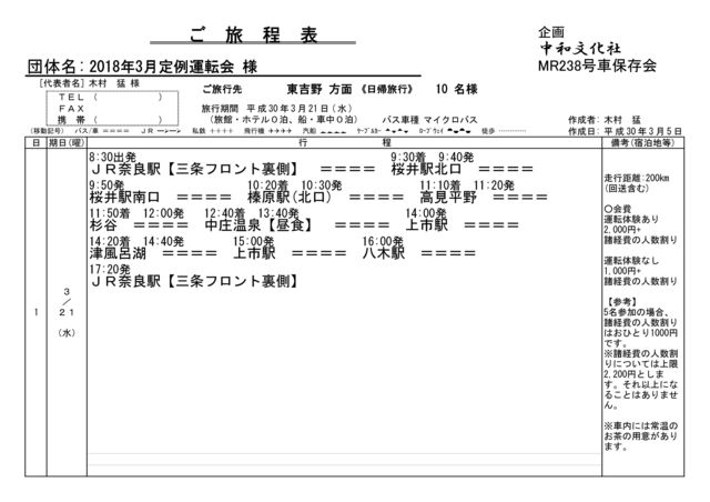 2018年3月の運転会は東吉野方面です。 榛原駅から[71]榛原駅発高見平野経由杉谷行きをリバイバルします! 昼食は前回好評だった吉野町楢井の喫茶「里」 後半は以前から気になっていた津風呂湖線を往復し、八木駅経由でJR奈良まで帰ります。 ○実施日:2018年3月21日(水・祝) ○集合場所・出発時間 JR奈良駅(三条フロント裏) 8:30発 桜井駅北口 9:30発 ※途中の経路上での乗降もご相談に応じます。ただし会費は同額です。 ○会費 運転体験あり:2,000円+諸経費の人数割り 運転体験なし;1,000円+諸経費の人数割り ※諸費