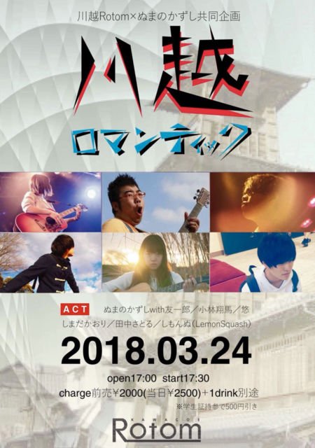 ¢¨Í§°ìϺ¡¡¤Ì¤Þ¤Î¤«¤º¤· ¥®¥¿¡¼¥µ¥Ý¡¼¥È¤Ç½Ð±é¢ö ¡¡ Àî±ÛRotom¡ß¤Ì¤Þ¤Î¤«¤º¤·¶¦Æ±´ë²è ¡ØÀî±Û¥í¥Þ¥ó¥Æ¥£¥Ã¥¯¡Ù ½Ð±é¡§¤Ì¤Þ¤Î¤«¤º¤·withͧ°ìϺ¡¿¾®ÎÓæÆÇÏ¡¿Íª¡¿ ¤·¤Þ¤À¤«¤ª¤ê¡¿ÅÄÃæ¤µ¤È¤ë¡¿¤·¤â¤ó¤Ì(Lemon Squash) open 17:00 start 17:30 charge Á°Çä¡ï2000(ÅöÆü¡ï2500)¡Ü1drinkÊÌÅÓ ¢¨³ØÀ¸¾Ú»ý»²¤Çcharge¡ï500³ä°ú¡ª Àî±ÛRotom http://www.kawagoe-rotom.com/index.html ¥Á¥±¥Ã¥ÈͽÌóÅù¾ÜºÙ¤Ï¤Ì¤Þ¤Ã¤Á¤Î¥Ö¥í¥°¤Ø https://ameblo.jp/numanokazushi/entry-12357404144.html