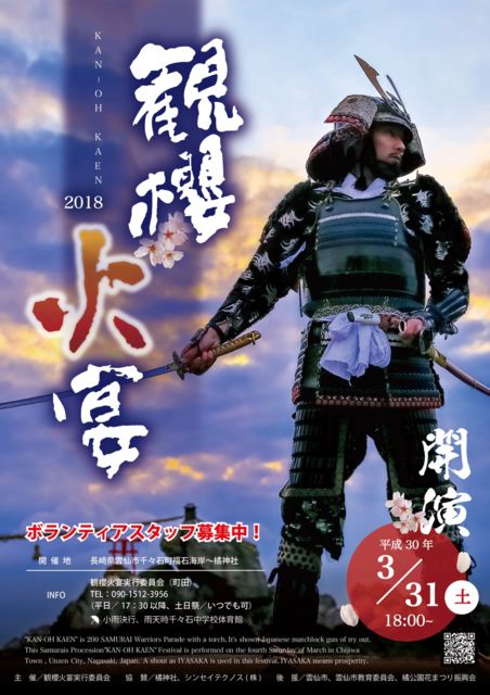 お疲れ様です。昨日、観櫻火宴実行委員会の会議が開催されて、観櫻火宴2018が正式に動き出しました。今回の観櫻火宴のチラシももうすぐ完成ですが一足早く皆さんに披露しますですので、よろしくPRと同時に参陣をよろしくお願いします。 また今回の観櫻火宴には、北九州から剣舞パフォーマンス軍団「総合武術 真延流」が来崎して、観櫻火宴の甲冑を着て演舞を行い花を添えて下さいます。別添のユーチューブ映像を見ると結構カッコイイです。特にこのような日本的な演舞は、毎回おいで下さる佐世保米軍基地の外人さんには受けると思うんですがいかがで