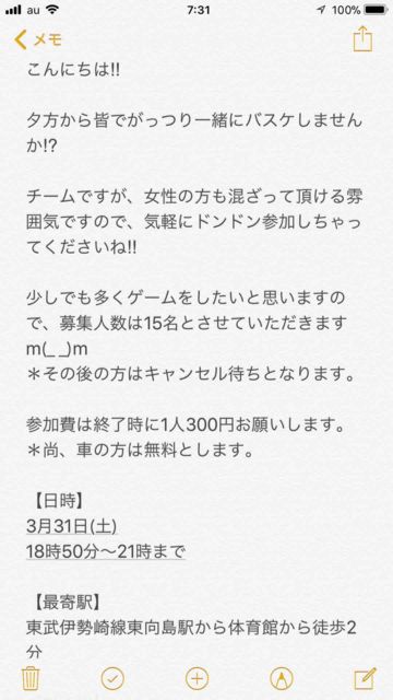¤³¤Á¤é¤Ç¤è¤¯¹ðÃΤµ¤»¤ÆÄº¤¡¢Â¿¤¯¤Î¿Í¤Ë»²²Ã¤·¤ÆÄº¤¡¢¤¢¤ê¤¬¤È¤¦¤´¤¶¤¤¤Þ¤¹¡£ °Ê²¼¤ÎÆüÄø¤Ç¥Ð¥¹¥±¤ò´ë²è¤·¤Þ¤·¤¿¡£ ¥Ð¥¹¥±¤Î¥á¥ó¥Ð¡¼¤¬Â¤ê¤Ê¤¯¤ÆÊ罸¤µ¤»¤Æ¤¯¤À¤µ¤¤¡£ ¥Ð¥¹¥±¸å¡¢ÉÍÄ®¸ø±àÆâ¤Ç¤ª²Ö¸«¤·¤¿¤¤¤Ê¡Á¤È¹Í¤¨¤Æ ¤¤¤Þ¤¹¤Î¤Ç¡¢¤½¤Á¤é¤âÀ§Èó¤´»²²Ã¤¯¤À¤µ¤¤¡£ ¤â¤Á¤í¤ó¥Ð¥¹¥±¤À¤±¤Ç¤âÂç¾æÉפǤ¹¡£ ¡Ú³«ºÅÆâÍÆ¡Û Æü»þ¡§3/31(ÅÚ)¡¡13:00¡Á17:00(4.0H) ¾ì½ê¡§Ãæ±û¶èÁí¹ç¥¹¥Ý¡¼¥Ä¥»¥ó¥¿¡¼¡ÊÉÍÄ®¸ø±àÆâ¡Ë HP¡§http://www.chuo-sports.jp/access.html ¥Ð¥¹¥±¤¦¤Þ¤¤Êý¤Ï¥³¡¼¥È¤¬¤»¤Þ¤¯ÊªÂ¤ê¤Ê¤¤¤«¤â ¤·¤ì¤Þ¤»¤ó¤¬¡¢Îý½¬¤·¤¿¤ê¡¢¤È¤Ë