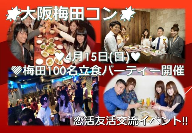 【4月15日(日)梅田恋活・友活 大規模半立食パーティー開催 100名規模予定】 開催場所Dining Bar faceの3周年も兼ねた大規模イベントになります!!お店から日頃の感謝を込めてささやかなプレゼントや仲良くなれるゲーム企画をご用意いたします(//∇//) 皆さま是非気軽に参加お待ちしてます 【日時】 4月15日(日) OPEN:18時30分〜START:19時00分〜 (2時間イベント)イベント終了後→2次会予定 【会場】 『ダイニングバーface』