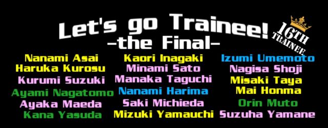 日程は未定ですが、レッツゴー研究生!公演千秋楽に向けて16期コミュニティ全体で以下の企画を行います。 ・スタンドフラワー1基 (1コミュニティ3600円、トータル64800円のお花) ・記念品としてフェイスタオル (村山さんにも贈呈。1コミュニティ1350円) 合計4950円ですが、贈呈用袋等を含め、1コミュニティ6000円となります。 上記企画にあたり、参加者の皆さまにはカンパ金をお願い致します。 《料金》 1口 500円(1人1口まで) 《支払い方法》 〈手渡し〉 3/11幕張メッセ(11月のアンクレット個別握手会) 上記のタイミングに