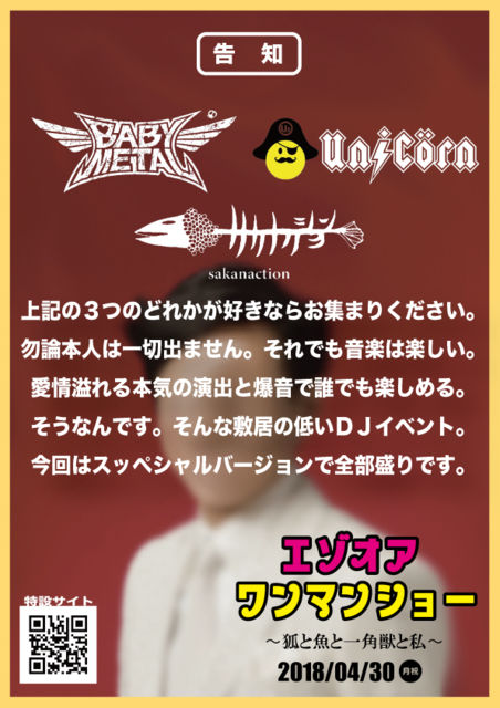 4·î30Æü¡ªDJ¥¤¥Ù¥ó¥È¤Ë¹Ô¤Ã¤¿¤³¤È¤Î¤Ê¤¤¿Í¤Ç¤â ³Ú¤·¤á¤ë¥¤¥Ù¥ó¥È³«ºÅ¡ª ¥æ¥Ë¥³¡¼¥ó¤Î̾¶Ê¤ò¥é¥¤¥Ö¤Î¤´¤È¤¯ ¤ß¤ó¤Ê¤Ç¥é¥¤¥Ö¥Ï¥¦¥¹¤Ç³Ú¤·¤á¤Þ¤¹¡£ Ʊ»þ³«ºÅ¤Ï Ëܵ¤¤Î¥ì¡¼¥¶¡¼¤¬Èô¤Ó¸ò¤¦¡Ö¥µ¥«¥Ê¥¯¥·¥ç¥óÃϹö¡× BABYMETAL¤Î¿¶¤ê¥³¥Ô¥æ¥Ë¥Ã¥È¡ÖEZOMETAL¡× Ëܲȥæ¥Ë¥³¡¼¥ó¤Î¥é¥¤¥Ö¤Ç¤Ï ¤â¤¦¤ä¤Ã¤Æ¤¯¤ì¤Ê¤¤¤¢¤Î¶Ê¤â¤Ê¤¬¤ì¤ë¤«¤â¡ª ¾Ü¤·¤¯¤ÏÆÃÀߥڡ¼¥¸¤Ë¤Æ¡ª http://ezoordie.com/eod20180430/ ========== ¥¨¥¾¥ª¥¢¥ï¥ó¥Þ¥ó¥·¥ç¡¼ ¡Á¸Ñ¤Èµû¤È°ì³Ñ½Ã¤È»ä¡Á 2018/04/30(·î½Ë) OPEN 18:15 START 18:30 CLOSE 22:30 1500±ß¡ÊÊÌÅÓ¥ï¥ó