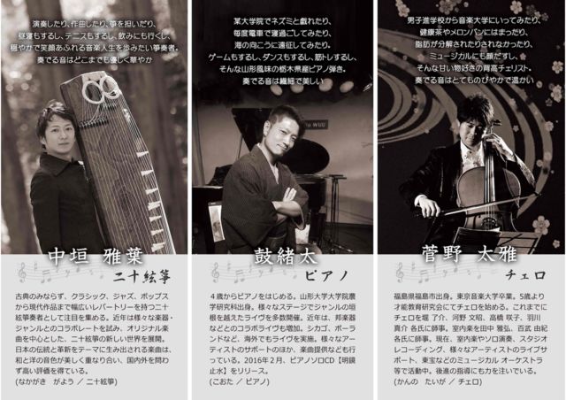 ´¶È¤·¤Æ¡û½½Ç¯¤Ç¤´¤¶¤¤¤Þ¤¹¤¬¡Ê¾Ð¡Ë ¤³¤Î¤¿¤Ó¡¢²¬»³¤Ë¤Æ¥Ô¥¢¥Î¡¢¥Á¥§¥í¡¢Æó½½¸¾ä·¤Î¥³¥ó¥µ¡¼¥È¤ò³«ºÅ¤·¤Þ¤¹¡£¤³¤Î¥È¥ê¥ª¤Ê¤é¤Ç¤Ï¤Î²¬»³¤Ê¤é¤Ç¤Ï¤ÎÁÇŨ¤Ê²»¤òʹ¤«¤»¤Æ¤¤¤¿¤À¤±¤ë¤È»×¤¤¤Þ¤¹¡£Ê¿Æü³«ºÅ¤Ç¤¹¤¬¡¢²¬»³¶á¹Ù¤ÎÊý¡¹¡¢¤¼¤Ò¤³¤Î²»¤ò³Ú¤·¤ß¤Ë¤¤¤é¤·¤Æ¤¯¤À¤µ¤¤¡£¥¯¥é¥·¥«¥ë¤Ê´¶¤¸¤Ç¤¹¤¬¡¢´ðËÜ¡¢Èà¤é¤Î¥ª¥ê¥¸¥Ê¥ë¶Ê¤Ç¤Î±éÁդǤ¹¡£ÆÃ¤Ë䷤ˤ³¤³¤Þ¤Ç¤Ç¤¤ë¤Î¤«¤È¤¤¤¦¡¢ä·¤È¤¤¤¦³Ú´ï¤Ë¤¿¤¤¤·¤Æ¤Î³µÇ°¤ÏÂ礤¯ÊѤï¤ë¤È»×¤¤¤Þ¤¹¡£¤½¤·¤Æ¡¢Ï³ڴÍγڴï¤Î¥³¥é¥Ü¤Î³Ú¤·¤µ¤òÌ£¤ï¤¨¤ë¤È»×¤¤¤Þ¤¹¡£ ƱµéÀ¸¡¢Æ±ÁëÀ¸¤Î¤ß¤Ê¤µ¤Þ¡¢¤ªÍ¶¤¤¹ç¤ï¤»¤Î¾å¡¢¤¼¤Ò