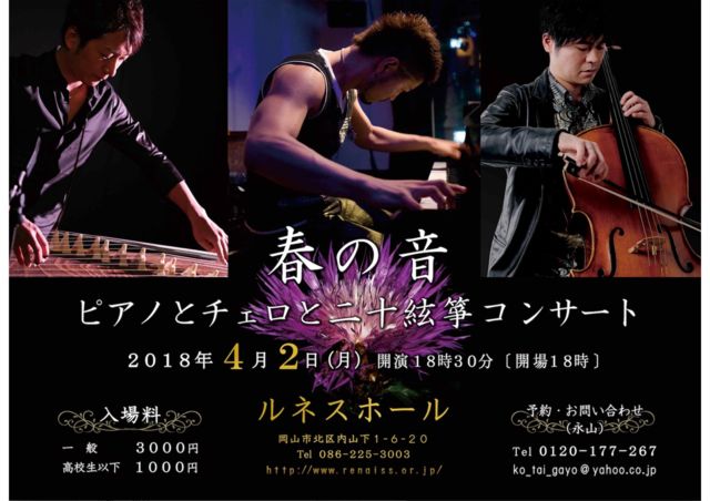 ¡Ú½Õ¤Î²»¡¡¥Ô¥¢¥Î¤È¥Á¥§¥í¤ÈÆó½½¸¾ä¸¥³¥ó¥µ¡¼¥È¡Û £²£°£±£¸Ç¯£´·î£²Æü¡Ê·î¡Ë ³«±é¡¡£±£¸¡§£³£°¡¡¡Ê³«¾ì£±£¸¡§£°£°¡Ë ¡ã½Ð±é¡ä ¡¡¡¡¥Ô¥¢¥Î¡¡¸Ý½ïÂÀ ¡¡¡¡Æó½½¸¾ä·¡¡Ãæ³À¡¡²íÍÕ ¡¡¡¡¥Á¥§¥í¡¡¿ûÌî¡¡ÂÀ²í <Æþ¾ìÎÁ¡ä¡¡°ìÈÌ¡¡¡¡¡¡¡¡¡¡£³£°£°£°±ß ¡¡¡¡¡¡¡¡¡¡ ¹â¹»À¸°Ê²¼¡¡¡¡ £±£°£°£°±ß ¡ã¾ì½ê¡ä¡¡¥ë¥Í¥¹¥Û¡¼¥ë ¡¡¡¡¡¡¡¡¡¡²¬»³»ÔË̶èÆâ»³²¼£±¡Ý£¶¡Ý£²£° http://www.renaiss.or.jp/ ͽÌ󡦤ªÌ䤤¹ç¤ï¤»¡Ê±Ê»³¡Ë ¡¡¡¡¡¡£°£±£²£°¡Ý£±£·£·¡Ý£²£¶£· ¡¡¡¡¡¡ko_tai_gayo@yahoo.co.jp ¡ö¥Á¥±¥Ã¥È¤ÏÆþ¶â³Îǧ¸å¤ÎȯÁ÷¤Ç¤¹ ¡¡¤Þ¤¿¡¢ÊÌÅÓÁ÷ÎÁ