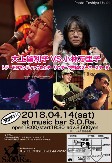 Âç¾åÎ±Íø»ÒFB¥¿¥¤¥à¥é¥¤¥ó¤è¤ê 4/14ÅÚÍËÆü¤Ï¡¢¤Ê¤ó¤Ð music bar S.O.Ra Âç¾åÎ±Íø»ÒVS¾®ÎÓËüΤ»Ò "¥È¥Æ¡¼¥â¥í¥Þ¥ó¥Æ¥£¥Ã¥¯¤Ë¥«¥¿¡¼¥ê¥¦¥¿¡¼¥¦À¤µª¤Î¥¹¡¼¥Ñ¡¼¥¹¥¿¡¼¥º" Âç¾åÎ±Íø»Ò¤È¤¹¤¬¤¿¤¢¤ä¤³(¥Ô¥¢¥Î) ¾®ÎÓËüΤ»Ò¤ÈÏÉÈøÍª»ýϺ(¥®¥¿¡¼)ÂçÌîÌÚ°ìɧ(¥Ï¡¼¥â¥Ë¥«) Open 18:00¡¡Stat 18:30 Á°Çä3,500±ß Á´¤¯°ã¤¦¥¿¥¤¥×¡¢¤À¤±¤É¤É¤³¤«»÷¤Æ¤¤¤ë¡¢ ²¿¤¬Èô¤Ó½Ð¤·¤Þ¤¹¤«¡¢¾®ÎÓ¤µ¤ó¡¢¸ð¤¦¤´´üÂÔ¡£ »ä¡© º£¤É¤Ê¤¤¤·¤è¤«¤¤¤Ê¤ÊºÇÃæ¤è¡£ ³§¤µ¤ó¡¢µ¹¤·¤¯¤Í¡£ ¾¼Ï¤β»³Ú»Ë¤Ë»Ä¤ë¥¹¡¼¥Ñ¡¼¥¹¥¿¡¼¥º¤è¤ª¡ª