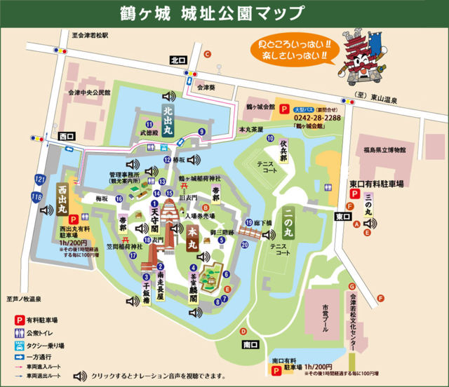(4/5 開催日変更しました。お間違えのないようお願いします) ────────────────────────────────────── 今年の花見ツーリングは趣向をかえて、会津鶴ヶ城の桜を見に行きたいと思います。 下記要領で実施しますので、ぜひ参加して下さい。 日時:4月15日(日) 集合:午前9時 会津レクリエーション公園 R49から入ってすぐの「第1駐車場」に集まって下さい。 (公園マップ参照下さい) 注意:歩く距離が長くなるので、クリートのカバーを忘れずに! ここにきて暖かい日が続いて