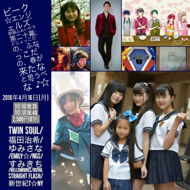 ÅìÃæÌîmusic shed yes! (ÅìµþÅÔÃæÌî¶èÅìÃæÌ¡Ý£µ£¶¡Ý£¸¡¡ÆüÀ¸¥Ó¥ë£²F¡Ë ¥ê¥Ï¡¼¥µ¥ë16:45~18:25 ³«¾ì:18:35 ³«±é:18:40 ¥Á¥±¥Ã¥È:2500ÊÌD ¡¿·À¤µªT¡ùNY 18:40~18:50 ¢TWIN SOUL (¥®¥¿¡¼¡¢¥Ò¥¢¥Î) 18:50~19:20 £Ê¡Åõ19:20¡Á19:40 ¤¤æ¤ß¤µ¤Ê19:40¡Á20:00 ¥Emily¡ù 20:00¡Á20:20 ¦NGS 20:20~20:40 §¤¹¤ß¤¤Á20:40~21:00 ¨HelloWorks(¥Ð¥ó¥É)20:50 21:00¡Á21:40 ©Royal Straight Flash 21:40¡Á22:00 ʪÈÎ 22:00~22:40