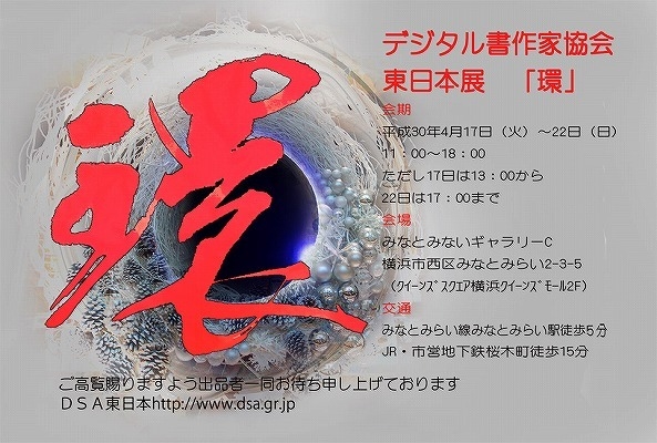 2018ǯ¡¡¥Ç¥¸¥¿¥ë½ñºî²È¶¨²ñÅìÆüËÜŸ ¡Ö´Ä¡×Ÿ¤Î¤´°ÆÆâ ²ñ´ü¢¡Ê¿À®30ǯ4·î17Æü(²Ð)¤«¤é4·î22Æü(Æü¡Ë ¡¡¡¡¡¡11¡§00¡Á18¡§00 ¡¡¡¡¡¡4·î17Æü¤Ï 13¡§00¤«¤é ¡¡¡¡¡¡4·î22Æü¤Ï 17¡§00¤Þ¤Ç ²ñ¾ì¢¡¤ß¤Ê¤È¤ß¤é¤¤¥®¥ã¥é¥ê¡¼C ²£ÉÍ»ÔÀ¾¶è¤ß¤Ê¤È¤ß¤é¤¤2¡Ý3¡Ý5 ¡¡¡¡¡¡(¥¯¥¤¡¼¥ó¥º¥¹¥¯¥¨¥¢²£ÉÍ¡¡¥¯¥¤¡¼¥ó¥º¥â¡¼¥ë2³¬¡Ë ¸òÄÌ¢¡¤ß¤Ê¤È¤ß¤é¤¤Àþ ¡¡¡¡¡¡¤ß¤Ê¤È¤ß¤é¤¤±Ø¤«¤éÅÌÊâ5ʬ ¡¡¡¡¡¡JR¡§»Ô±ÄÃϲ¼Å´ºùÌÚÄ®¤«¤éÅÌÊâ10ʬ ¤´¹âÍ÷»ò¤ê¤Þ¤¹¤è¤¦½ÐÉÊ¼Ô°ìÆ±¤ªÂÔ¤Á¿½¤·¾å¤²¤Æ¤ª¤ê¤Þ¤¹