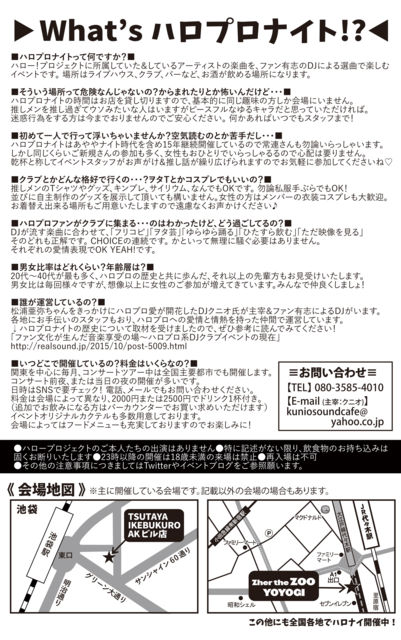 ¡ÈÅìµþ¥Ï¥í¥×¥í¥Ê¥¤¥ÈÆÃÊÌ´ë²è¡É ¡Á¤¢¤ä¤ä¥Ê¥¤¥È16¼þǯ´ë²è¡¦¾¾±º°¡ÌïÆÃ½¸¡Á Æü»þ¡§2018ǯ4·î24Æü(²Ð)18:30¡Á23:30¡ª ²ñ¾ì¡§Zher the ZOO YOYOGI¡¡03-5358-4491 ½»½ê¡§½Âë¶èÂ塹ÌÚ1-30-1¡¡Â塹Ìڥѡ¼¥¯¥Ó¥ëB1F http://www.ukproject.com/zherthezoo/ ¢¨JRÂ塹Ìڱء¦À¾¸ý¤«¤éÅÌÊâ1ʬ ÎÁ¶â¡§ÅöÆü2,000±ß¡Ê1¥É¥ê¥ó¥¯ÊÌÅÓ¡Ë DJ¡õVJ¡§¥¯¥Ë¥ª¡¿etc Show Time¡§¤ß¤ª¤Á¤å¤ó ¡Ú¥Ï¥í¥×¥í¥Ê¥¤¥È¤È¤Ï¡Ä¡©¡Û ¥â¡¼¥Ë¥ó¥°Ì¼¡£'18¡¢¥¢¥ó¥¸¥å¥ë¥à¡¢ Juice=Juice¡¢ ¥«¥ó¥È¥ê¡¼¡¦¥¬¡¼¥ë¥º¡¢¤³¤Ö¤·¥Õ¥¡¥¯¥È¥ê¡¼¡¢¤Ä¤Ð¤­¥Õ¥¡¥¯¥È¥ê¡¼¡¢ ¥Ï¥í¥×