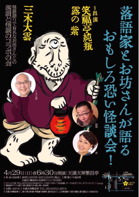 《今からでも間に合うGWの過ごし方》第2弾【落語家とお坊さんが語るおもしろ恐い怪談会】繁昌亭4月29日(日)の夜席!(次の日も休日)実話怪談と落語怪談の狂演! 繁昌亭にて18:30怪演! 前売)2000円、当日)2500円、 0663524874 (繁昌亭、 ご来場、お待ちしております〜!👻