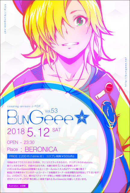 ¥¨¥ì¥¬¥ó¥È¤ÊÊ·°Ïµ¤¤òÅ»¤¦¥¨¥ó¥¿¡¼¥Æ¥¤¥á¥ó¥È¥À¥¤¥Ë¥ó¥°BERONICA ¤½¤ÎBERONICA¤¬°ìÈÕÃæ¥¢¥Ë¥½¥ó¤ÈJ-POP¤ÎÇ®µ¤¤ËÊñ¤Þ¤ì¤ë°ìÌë¡¢BunGeee¡ù º£²ó¤Ï¥«¥ª¥Õ¥¦¥¨¥¹¥È¤«¤éSHIMA¡¢¥¢¥Ë¥³¥¹¥¯¥é¥Ã¥Á¤«¤é¤Î¤ê¡¢¥¢¥Ë¥Ç¥ê¤«¤é¤Ïelucuro¡¢ ²»¥¸¥§¥Í¤«¤é¤ª¤ä¤Ä¡¢¥Í²»¤«¤é¤Ï¤Ò¤í¤ß¡¢Ê¼¸Ë¤Î¼ã¼êDJ¥¿¥à¤¬Åо줷¤Þ¤¹¡ª¡ª LIVE¤Ë¤ÏBunGeee¡ù½éÅоì¤È¤Ê¤ë¥·¥ó¥¬¡¼Ayata¤ÈÂç¿Í¸þ¤±¥¢¥¤¥É¥ë³ª¹¾·É»Ò¡ª º£²ó¤Ï¥²¡¼¥à¥ß¥å¡¼¥¸¥Ã¥¯DJ¥¿¡¼¥ó¤â¤¢¤ê¡ªÁ°²ó¤Ë°ú¤Â³¤¥Û¥¤¥ß¥ó¤Î¥²¡¼¥à¥³¡¼¥Ê¡¼¤â¡ª ¤ª³¨ÉÁ¤¥³¡¼¥Ê¡¼¤ÏLIMITS¥Û¥Ã¥È¥±¡¼¥¥¢¡¼¥È¥Ð¥È¥ë¥Á¥ã¥ó¥Ô¥ª