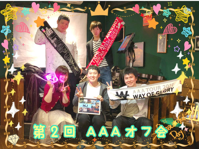 管理人様、貴重なスペースをお借りしますm(_ _)m ☆☆☆第3回♪AAAオフ会♪☆☆☆ ◎幹事からの挨拶◎ 初めましてこの度、AAAオフ会を開催する幹事のけんたと申します 周りにAAAファンが少なく、仲間や友達がほしい(*´∀`)♪♪普段のカラオケでは歌えないようなコアな曲も歌いたい(*´ω`*)と思いこのAAAオフ会の開催に至りました このオフ会を通して色んな方々と交流できたらなと思っています AAAの曲が好き、メンバーが好き(σ≧▽≦)σ AAAのファンが周りに居なくて寂しい( ;∀;)