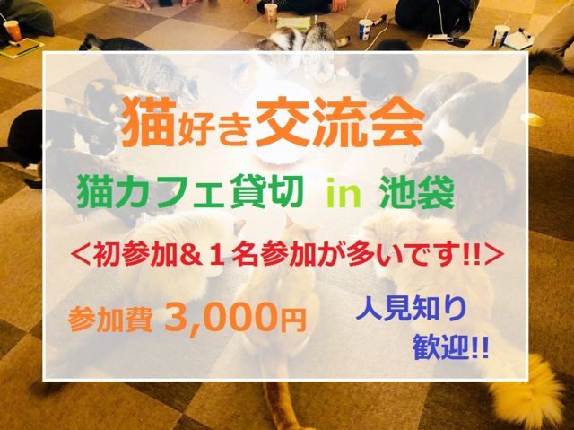 管理人様告知失礼します、、、 参加表明&詳細はこちらから http://mixi.at/w8duxU4 こんにちは...飲み会・パーティを毎週開催しております。 【毎回満員御礼友達・仲間づくりパーティ】 初参加の方が7割くらいいらっしゃいますが、スタッフが皆さんが仲良くなれるようにお繋ぎしますので人見知りでも大丈夫♪ 今回はちょっと趣向を変えて、1年ぶりの猫カフェを貸切ってのイベント♪、 可愛い猫ちゃん達がいますので、すぐに仲良くなれます。。。人見知り大歓迎!! ねこ好きな友達欲しい方、もふもふしたい方お待ちして