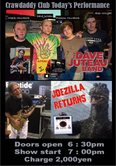 5/17 本日はライブです。 The Dave Juteau Band & JoeZilla featuring guitarist Joe Berger (from New York) OPEN 18:30 START 19:00 CHARGE 2000円