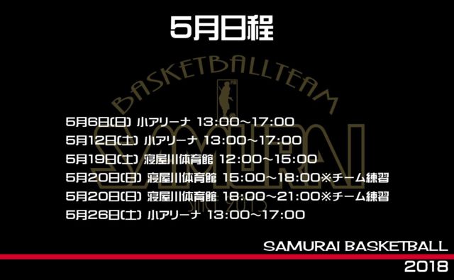 日時場所 5月 19(土)寝屋川市民体育館 大阪府寝屋川市下木田町16−16 電話: 072-824-5858 詳細 遅刻や早退連絡してください 参加する場合は、名前性別人数を書き込みおねがいします。 30分〜一時間練習後ゲームします。 チーム分けは主催者が決めています。 Aチーム 勝ちにこだわるガチバスケ Bチーム 楽しくミックスバスケ 女子の参加者多数の場合は女子のみに可能性もあります。 初参加の方は、基本的にBチームに入ってもらいます。 募集要項 18歳以上高校生不可 男