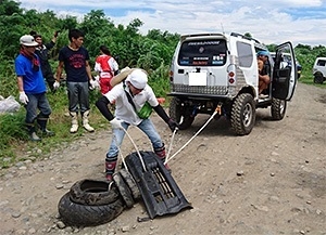 猿ヶ島河川敷入口から入って、川下に位置する場所。目印の看板、テントと机があります。 相模川の『猿が島クリーンキャンペーン』は相模川を気持ちよく使いたいと年に1回、ジムニー、四駆、モトクロス、トライアルバイク、ラジコン、釣りを趣味とする人たちが一堂に集まり、厚木市、神奈川県と協力して、相模川の猿が島地区をきれいにしようというイベントです。RV4ワイルドグースは事務局として携わっています。 現在、猿ヶ島は環境に関する多くの問題によって閉鎖の危機に晒されています。皆さんの手でこの遊び場を守るため、出来る事から問