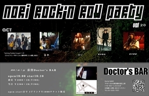 のり presents NORI ROCK'N' ROLL PARTY VOL.20 荻窪Doctor's BAR open 18:00 start 18:10 前売 ¥2000+1D(¥500) 当日 ¥2300+1D(¥500) open-startまで 3ドリンク¥1000チケット販売 出演 ・Tammy,Fujioka,Yuuyaトリオ(B.Vo.タミー今井 G.Vo 藤岡孝男 G.Vo鎌上裕也) ・Takashi Matsui (松井崇史) ・るか ・田中春菜 ・のり あいむまりんはMCです♪