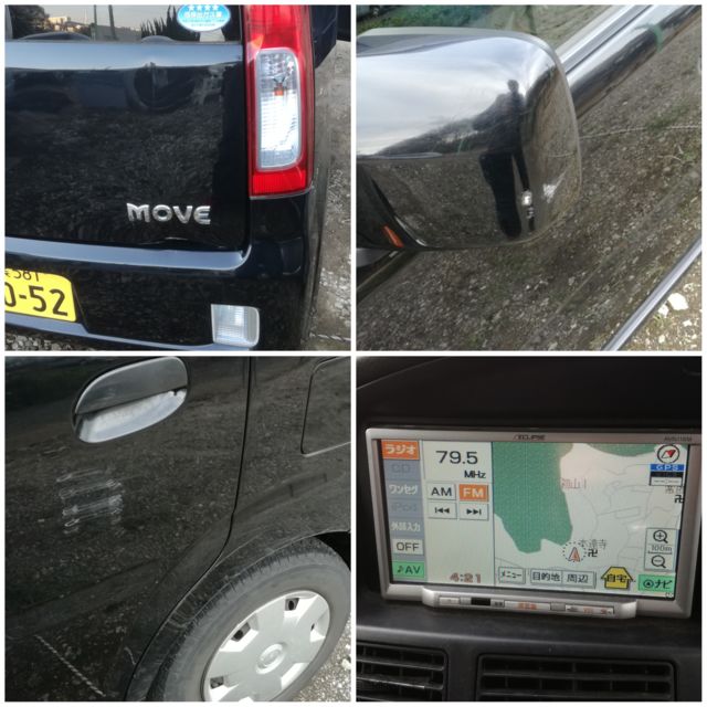 コミコミ120,000円 (96200+tax+リサイクル+自動車税) ※名義変更保証金は別途三万円お預かりします 17年ムーブL 85,000km 車検30/7/24 ナビ、ワンセグ、ETC、キーレス、走りエアコン絶好調 左後ろキズ、リアゲート凹み 黒なのでそこそこ小傷目立ちますが、バフ掛けしたのでぱっと見艶は悪くないです。 まぁ安い割に、、とお考え戴ければ幸いです。 走りは絶好調です。