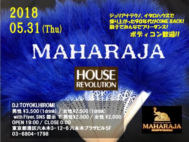 ¥¸¥å¥ê¥¢¥Ê¥Æ¥¯¥Î¤ÇÀ¹¤ê¾å¤¬¤Ã¤¿90ǯÂ夬¥«¥à¥Ð¥Ã¥¯¡ª Àð»Ò¤Ç¤ß¤ó¤Ê¤Ç¥Õ¥ê¡¼¥À¥ó¥¹¡ª ¥Ü¥Ç¥£¥³¥ó´¿·Þ¤Ç¤¹ SOUND ¡§JULIANA's TECHNO¡¢ITARO HOUSE¡¢VELFARRE's TECHNO PLACE ¡§MAHARAJAÏ»ËÜÌÚ TIME¡§19:00¡Á24:00 FEE¡§¡é3500¡¢¡ê2500(¶¦¤Ë£±£Ä) ¡¡¢¨¥Õ¥é¥¤¥ä¡¼¡¢SNSÄ󼨤ǡé2500¡¢¡ê2000 DJ ¡§TOYOKI¡¢HIROMI