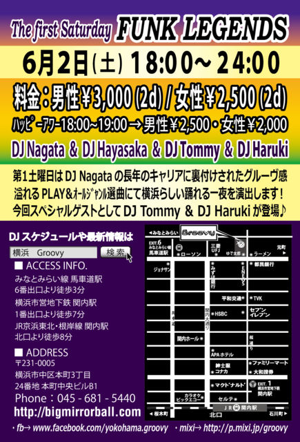¡úDISCO Groovy Ëè·îÂ裱ÅÚÍËÆü¤Ï¡ª¡ú ¥Ï¥Þ¤Î½ÅÄáÔVDJ Nagata¡Õ¤Ë¤è¤ëÄê´ü¥¤¥Ù¥ó¥È¡ÚFUNK LEGENDS¡Û Ĺǯ¤Î¥¥ã¥ê¥¢¤Ë΢ÉÕ¤±¤µ¤ì¤¿°ÂÄê´¶È´·²¤Ê¥°¥ë¡¼¥ô´¶¤¢¤Õ¤ì¤ëPLAY¤ò¤É¤¦¤¾¤´´®Ç½¤¯¤À¤µ¤¤¡ª º£²ó¥¹¥Ú¥·¥ã¥ë¥²¥¹¥È¤È¤·¤Æ¡ÚDJ TOMMY ¡õ DJ HARUKI¡Û¤¬Åо줷²£ÉͤÎÅÚÌë¤ò¹¹¤Ë¥À¥ó¥µ¥Ö¥ë¤ËÇ®¤¯À¹¾å¤²¤Þ¤¹¡ù ¡Ú²»³Ú¡Û¥ª¡¼¥ë¥¸¥ã¥ó¥ë / ¥ª¡¼¥ë¥ß¥Ã¥¯¥¹ Dance Classics¡¢Soul¡¢Funk¡¢R&B¡¢Hip-Hop¡¢EDM¡¢etc... ¡Ú³«ºÅ»þ´Ö¡Û 18¡§00¡Á24¡§00 ¡Ú¥Ï¥Ã¥Ô¡¼¥¢¥ï¡¼ÎÁ¶â / 18:00¡Á19:00¤Ë¤´ÍèŹ¤ÎÊý¡Û ¡üÃËÀ¡§¡ï2,500 / 2Drinks¡¡¡ü½÷À¡§¡ï2,
