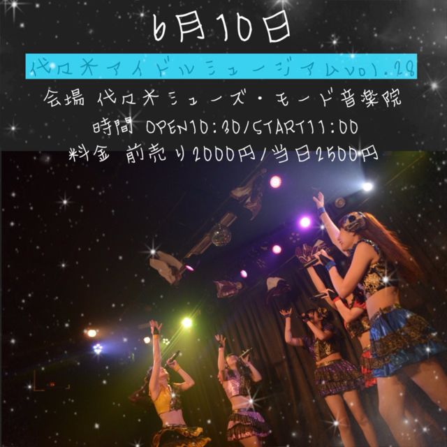 ¡ÖÂ塹ÌÚ¥¢¥¤¥É¥ë¥ß¥å¡¼¥¸¥¢¥àvol.28¡× Æü»þ¡§06/10(Æü) ³«¾ì10:30 / ³«±é11:00 ²ñ¾ì¡§Â塹Ìڥߥ塼¥º¡¦¥â¡¼¥É²»³Ú±¡ ÎÁ¶â¡§Á°Çä2,000±ß / ÅöÆü2,500±ß (1DÊÌ) ÎÁ¶â¡§Á°Çä2,000±ß / ÅöÆü2,500±ß (1DÊÌ) ¢¨ºÆÆþ¾ì²Ä(Í×1D) ½Ð±é¡§Ê¿À®¶×ɱ/¤Ï¤Ã¤Ô¤Ã¤Ô/Dear L mana/¥Æ¥ó¥·¥á¥·/TOKYO SWEET PARTY/¥¢¥ó¥À¡¼¥Ó¡¼¥¹¥Æ¥£¡¼/TEARS-¥Æ¥£¥¢¡¼¥º-/¤¢¤ó¤À¡¼¤Ó¡¼¤¹¤Æ¤£¡¼/ÍÕ»³¤¢¤æ¤ê/CANDY GO!GO!/¥À¥¤¥Ö¥Ã¡ª/Nicedice/ÍÛ¿¥Þ¥ê¥£/ÃѤ¸¤é¤¤¥ì¥¹¥¥å¡¼JPN/ÀĽգ±£¸ÈÖ¥Û¡¼¥à/¥¤¥¥Ê¥ê¡ª¡©¤ß¤Ê¤é¤¤½÷¿À¤µ¤Þ/Nae (ex. ÎÞ-NAMIDA-)/P.IDL/Â塹ÌÚ½÷»Ò²»³Ú±¡/NIJIIR