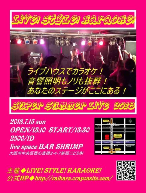 »²²ÃÏÈËä¤Þ¤ê¤Þ¤·¤¿¤Î¤Ç ¸½ºßsold out¤Ç¤¹m(__)m LIVE¡ª STYLE¡ª KARAOKE! super summer LIVE 2018 2018ǯ 7·î 15Æü(Æü) open 13:10/start 13:30 close 19:15 ¢§¥Á¥±¥Ã¥È¢§ 2500/1D&¥Á¥ã¡¼¥àÉÕ ¡öºÆÆþ¾ì²Ä ¡ö°û¿©Êª¤Î»ý¹þ¤Ï½ÐÍè¤Þ¤»¤ó Äɲåɥê¥ó¥¯¤ÏŹÆâ¤Ë¤Æ1¥É¥ê¥ó¥¯500±ß (ÆÃ¼ì¤Ê¤ª¼ò¤ò½ü¤¯)¤Ë¤Ê¤ê¤Þ¤¹¡£ ¢§¾ì½ê¢§ Live space BAR SHRIMP (Æ»ÆÜËÙ ¥·¥å¥ê¥ó¥×) Âçºå»ÔÃæ±û¶èÀ¾¿´ºØ¶¶2-4-7 ¿·Ê¡¥Ë¥Ó¥ëB1 ⚫ͽÄê¶Ê¿ô¤Ï ¥¨¥ó¥È¥ê¡¼¶Ê 40¶Ê Èô¤ÓÆþ¤ê»²²ÃÏÈ 10¶Ê ¹ç·× 50¶Ê¤ò4¶Ê¤º¤Ä½Ð±é¼ÔÍͤò¾Ò²ð¤·¤Ê¤¬¤é²Î¤Ã¤Æ¤¤