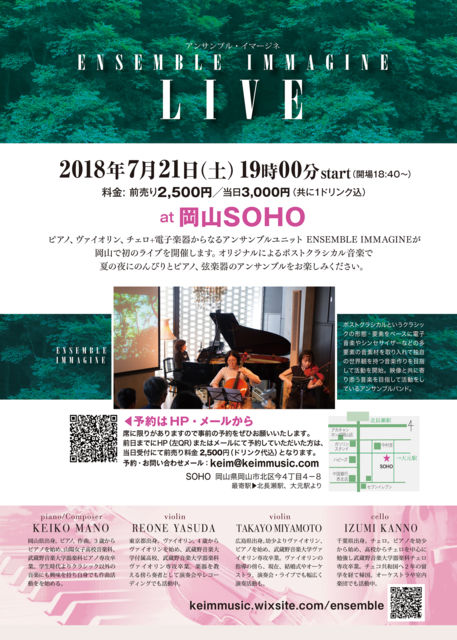 º£ÅÙ7·î21Æü¡ÊÅڡˤËËÌĹÀ¥¤Îcafe SOHO¤Ç¥¢¥ó¥µ¥ó¥Ö¥ë¥é¥¤¥Ö¤ò¤ä¤ê¤Þ¤¹¡£ ¥Ð¥¤¥ª¥ê¥ó2ËÜ¡¢¥Á¥§¥í¡¢¥Ô¥¢¥Î+ÅŻҳڴï¤Î¹½À®¤Î¥ª¥ê¥¸¥Ê¥ë¤Ç¤¹¡£¤½¤·¤Æ±ÇÁü¤È¶¦¤Ë¡£ ²¬»³¤Î³§ÍÍ¡¢¤´¶½Ì£¤¢¤ê¤Þ¤·¤¿¤éÀ§Èóݤ¤ËÍè¤Æ¤¯¤À¤µ¤¤¡ª https://keimmusic.wixsite.com/ensemble http://soho214.blog11.fc2.com