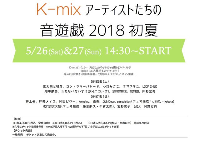 【終了しました】 2018/5/26&27 オガワマユ@静岡K-mix space-K 「K-mix アーティストたちの音遊戯 2018初夏」出演が決まりました!