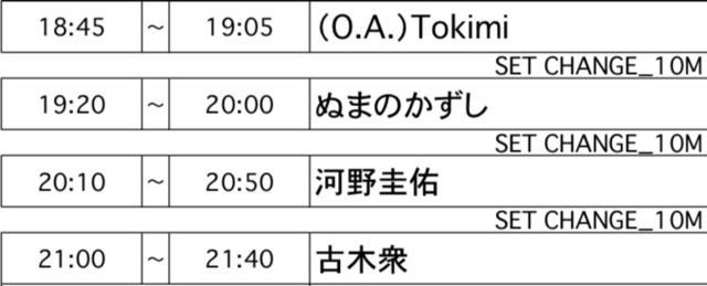 ※友一郎 ぬまっちサポートとして出演♪♪ サンスト18周年記念3MAN 『18年の数え唄』 出演:河野圭佑/ぬまのかずしwith友一郎/古木衆 O.A./Tokimi 開場18:15 開演18:45 前売¥2500+1dr ※高校生割引あり1000円(要 学生証掲示) プレイガイド Livepocket 出演予定時間⇒ 19:20から40分 Sound Stream sakura http://shizu-sound-stream.com/