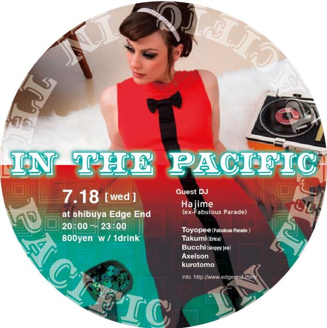 ¡ÚIn The Pacific 136¡Û 2018/7/18¡ÊWed¡Ë ¡÷½ÂëEdge End¡¡http://www.edgeend.com/ 20¡§00¡Á23¡§00¡¡800yen w/1d Guest DJ¡§ ¡¡Hajime¡Êex-Fabulous Parade ¡Ë¡¡ DJs¡§ ¡¡Toyopee¡ÊFabulous Parade ¡Ë ¡¡Takumi¡ÊErica¡Ë ¡¡Bucchi¡Êsloppy joe¡Ë ¡¡Axelson ¡¡kurotomo ********************************************** º£·î¤Î¥²¥¹¥È¤Ï¸µ¥Ñ¥ì¡¼¥É¤Î¥Ï¥¸¥á¤µ¤ó¤Ç¤¹¡ª »Å»öµ¢¤ê¤äÇ㤤ʪ¤Ä¤¤¤Ç¤Î°ìÇդˡ¢¤¤¤«¤¬¤Ç¤·¤ç¤¦¤«¡© 90ǯÂ夫¤é³¤¯¤ª¼ò¤È¤ª¼ò¤È¤ª¼ò¤È¥ì¥³¡¼¥É¤Ç·Ò¤°²»³Ú¥¤¥Ù¥ó¥È¤Ç¤¹¡£ ¥á¥ó¥Ð¡¼¶¦¡¹¤ªÂÔ¤Á¤·¤Æ¤ª¤ê¤Þ¤¹¡ª