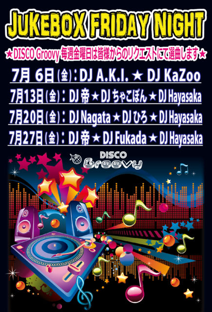 ¡ú¤ªµÒÍͤ«¤é¤Î¥ê¥¯¥¨¥¹¥È¤Ë¤Æ Music Video ¤ò¿¥¤ê¸ò¤¼¤Ä¤ÄÁª¶Ê¤·À¹¾å¤²¤ë¥¤¥Ù¥ó¥È¡§JUKEBOX FRIDAY NIGHT¡ú Àβû¤«¤·¤¤¤¢¤ó¤Ê¶Ê¡¢ºÇ¶áή¹Ô¤ê¤Î¤³¤ó¤Ê¶Ê¡¢¥¸¥ã¥ó¥ëÌä¤ï¤º¥ê¥¯¥¨¥¹¥È¤ò¤É¤¦¤¾¡ª DJ¤½¤ì¤¾¤ì¤Î¥×¥ì¥¤¥¹¥¿¥¤¥ë¤ò³§ÍͤǤɤ¦¤¾¤ª³Ú¤·¤ß²¼¤µ¤¤♬ ¡Ú²»³Ú¡Û¥ª¡¼¥ë¥¸¥ã¥ó¥ë¡Ê¥ê¥¯¥¨¥¹¥ÈÍ¥Àè¡Ë Soul¡¢Funk¡¢Dance Classics¡¢HipHop¡¢R¡õB¡¢EDM¡¢Euro¡¢etc... ¡Ú³«ºÅ»þ´Ö¡Û 18¡§00¡Á24¡§00 ¡Ú¥Ï¥Ã¥Ô¡¼¥¢¥ï¡¼ÎÁ¶â / 18:00¡Á19:00¤Ë¤´ÍèŹ¤ÎÊý¡Û ÃËÀ¡§¡ï2,500 / 2Drinks ½÷À¡§¡ï2,000 / 2Drinks ¡ÚÎÁ¶â / 19:00°Ê¹ß¤´ÍèŹ¤Î