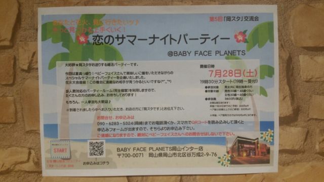 アラフォー中心の婚活パーティーです。 ただ今女性参加者大募集中です。 日時迫っておりますが、どうぞよろしくお願いいたします! 「mixi見た」で、2500円になります! ベビーフェイスさんの食事&ドリンク付です。 お申し込みはコチラ↓↓↓ https://form.os7.biz/f/79b21410/