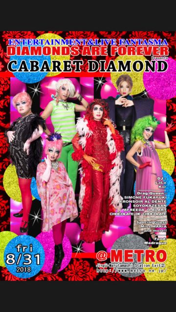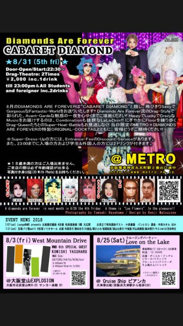Diamonds Are Forever Cabaret Diamond 2018 08 31 fri 10:30〜 シモーヌ/アフリーダ/ショコラ/そよ風/フランソワ/マリア/ララ/カオル ほか @京都 クラブメトロ Http://www.metro.ne.jp/diamonds-are-forever