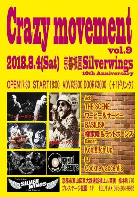 (BAND) 柳家睦&THE RAT BONES ワービー&サービー THE SCENE BASILISK (Dancer) Kob!!!!!ch Up (DJ) Cockney accent's OPEN 17:00 / START 17:30 adv:2,500yen door:3,000yen (+1drink)
