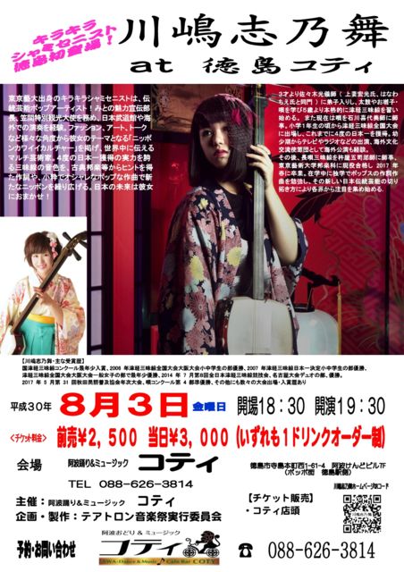 ¡ØÀîÅè»ÖǵÉñ¥³¥ó¥µ¡¼¥È¡¡at ÆÁÅç¡Ù Æü»þ¡§Ê¿À®30ǯ8·î3Æü¶âÍËÆü open 18¡§30¡Á start 19¡§30¡Á ²ñ¾ì¡§°¤ÇÈÍÙ¤ê&¥ß¥å¡¼¥¸¥Ã¥¯¡¡¥³¥Æ¥£ ¥¢¥¯¥»¥¹¡§ÆÁÅç»Ô»ûÅçËÜÄ®À¾1-61-4¡¡°¤ÇȤ±¤ó¤É¥Ó¥ë7F¡Ê¥Ý¥Ã¥Ý³¹¡¡ÆÁÅç±ØÂ¦¡Ë ¥Á¥±¥Ã¥È¡§Á°Çä¤ê\2500¡Ê1¥É¥ê¥ó¥¯500±ßÊÌ¡Ë ¢¨Çä¤êÀڤ줬ͽÁÛ¤µ¤ì¤Þ¤¹¤Î¤Ç´ðËÜŪ¤ËÅöÆü·ô¤Ï¤Ê¤·¤È¤·¤Þ¤¹¡£ ¼çºÅ¡§°¤ÇÈÍÙ¤ê&¥ß¥å¡¼¥¸¥Ã¥¯¡¡¥³¥Æ¥£ ´ë²èÀ©ºî¡§¥Æ¥¢¥È¥í¥ó²»³Úº×¼Â¹Ô°Ñ°÷²ñ ¥Á¥±¥Ã¥ÈͽÌóÅÅÏá§°¤ÇÈÍÙ¤ê&¥ß¥å¡¼¥¸¥Ã¥¯¡¡¥³¥Æ¥£ TEL 088-626-3814 Åìµþ·Ý½ÑÂç³ØÂ´¶È¤ÎÄÅ·Ú»°Ì£Àþ¡¦¥¥é¥¥é
