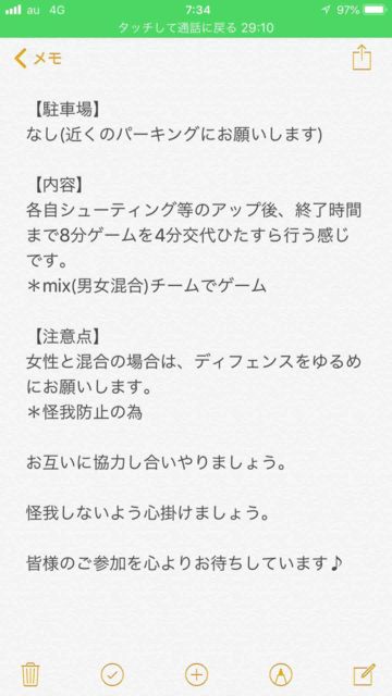 懲りずにやり続けています 参加者募集中 2時間ラリー練習メインで試合はしていません。( ̄(工) ̄) 参加費1200円の頭割りとボール代100円/一人 現在参加者 わたし(初級レベルの試合でペアのお陰で優勝できたレベル) コア(その私をコケにできるレベル) KAZU(私とおんなじぐらい〜) あと2人募集です