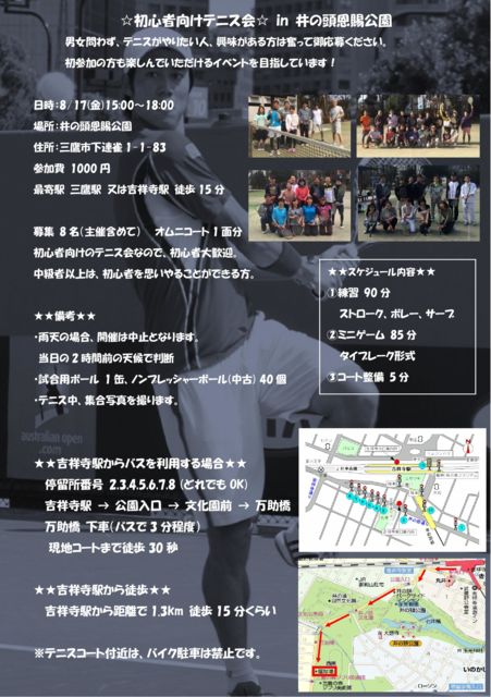 ¥Æ¥Ë¥¹¤ò³Ú¤·¤á¤ì¤Ð¤È»×¤¤¤Þ¤¹¡¢¤è¤í¤·¤¯¤ª´ê¤¤¤·¤Þ¤¹¡£ »þ´Ö¡§¡¡¡¡£¸·î£±£·Æü¶âÍËÆü¡¡15:00¡Á17:00 ½»½ê¡§¢©180-0001¡¡ÅìµþÅÔÉð¢Ìî»ÔµÈ¾Í»ûËÌÄ®5-11-41 Éð¢Ìî»Ô̱¥Æ¥Ë¥¹¾ì¤ÎÎÙ¤ÎÃæ³Ø¹»¡¢ ²¼µ¤Î¥ê¥ó¥¯¤«¤é¤Ç¤â³Îǧ¤Ç¤¤Þ¤¹¡¢Åê¹ÆÆâÍÆ¤âºÇ¸å¤Þ¤Ç³Îǧ¤·¤Æ¤¯¤À¤µ¤¤¡£ http://mixi.jp/view_bbs.pl?id=51596800&comm_id=4293412 ºÇ´ó±Ø¡§»°Âë±Ø¤ÈµÈ¾Í»û±Ø¤«¤é¥Ð¥¹¤ÇÍè¤ë¤è¤¦¤Ë¤Ê¤ê¤Þ¤¹¡£ ¢¨»°Âë±Ø¤«¤éÊ⤤À¤È¡¢2.2Km(33ʬ)¤¢¤ê¤Þ¤¹¡£ ¢¨»°Âë±Ø¤«¤é¥Ð¥¹¤À¤È¡¢Ãæ±ûÀþ»°Âë±ØË̸ý²¼¼Ö¡¢ Ë̸ý¤Ë½Ð¤ë¤È¥Ð¥¹¤Î¥í¡¼¥¿¡¼¥ê¡¼¤Ë¤Ê¤Ã¤Æ¤¤¤Æ¡¢ Â룰