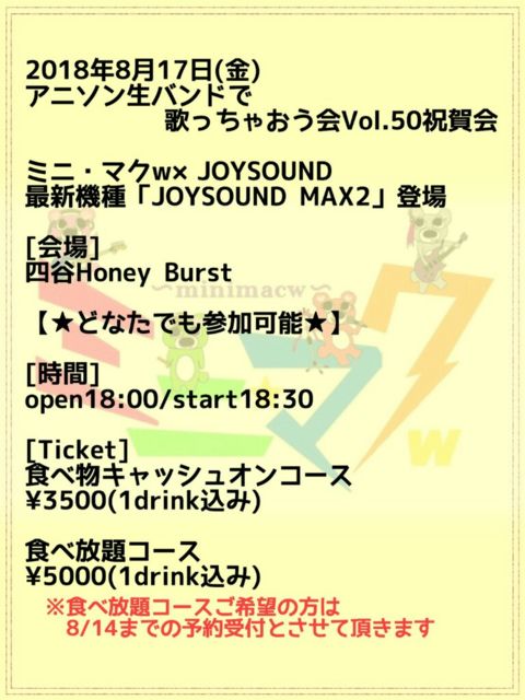 ¥¢¥Ë¥½¥óÀ¸¥Ð¥ó¥É¤Ç²Î¤Ã¤Á¤ã¤ª¤¦²ñVol.50µÇ°½Ë²ì²ñ¡ù×Ä ¥ß¥Ë¡¦¥Þ¥¯w¡ßJOYSOUND ²ñ¾ì¡§»Í¥ÃëHoney Burst ¡Ú¡ú¤É¤Ê¤¿¤Ç¤â»²²Ã²Äǽ¡ú¡Û Ëè·î¹±Îã¤Î¥ß¥Ë¡¦¥Þ¥¯w¥¢¥Ë¥½¥óÀ¸¥Ð¥ó¥É¤Ç²Î¤Ã¤Á¤ã¤ª¤¦²ñ¤Î50²óµÇ°½Ë²ì²ñ(°û¤ß²ñw)¤Ë¡¢ ¤Ê¤ó¤È¤¢¤ÎJOYSOUND¤ÎºÇ¿·µ¡¼ï¡ÖJOYSOUND MAX2¡×¤ò»È¤Ã¤Æ »ÍëHoney Burst¤Î²ñ¾ì¤Ë¤ÆÂç²»Î̤ǥ«¥é¥ª¥±¤¬³Ú¤·¤á¤Á¤ã¤¦´ë²è¤òƳÆþ¡ª¡ª µ¤Ê¬¤ÏĶVIP Room¤Ç¥ª¡¼¥Ç¥£¥¨¥ó¥¹ÉÕ¤¤ÎìÔÂô¥«¥é¥ª¥±(¾Ð)À§È󤳤ε¡²ñ¤ò¤ª¸«Æ¨¤·¤Ê¤¯¡ª¡ª ¤É¤Ê¤¿¤Ç¤â»²²Ã²Äǽ¤Ç¤¹¢ö¢ö¤ªµ¤·Ú¤Ë¤ª±Û¤·¤¯¤À¤µ¤¤¡ù (¥ß¥Ë¡¦¥Þ¥¯w¤Ë¤è¤ë¥Õ¡¼¥É½ÐŹ¤â¤¢