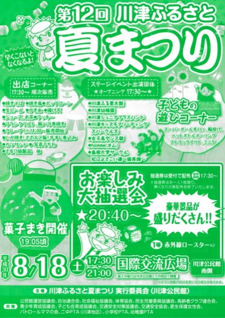 8/18(sat)@国際交流広場(島根県松江市/川津公民館南側) 第12回川津ふるさと夏祭り <CAST> homme 他多数 時間:17:30〜21:00 入場無料 hommeは19:50から20分程度の出演予定です!(若干前後する可能性あり) <お問い合わせ> 松江市川津公民館(島根県松江市西川津町 3405-5)電話:0852-21-2349 お誘いあわせの上、ぜひ!