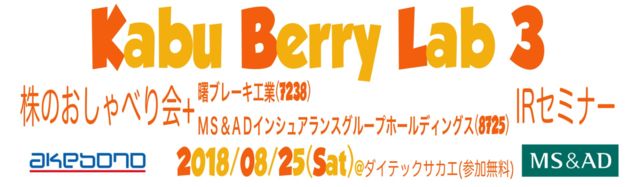 ³ôÃç´Ö¤¬¤Ç¤¤ëIR¥»¥ß¥Ê¡¼¡ÖKabu Berry Lab¡×¤ÎÂè3Ãʤ¬·èÄꤷ¤Þ¤·¤¿¡£ º£²ó¤Ï ¢£½ì¥Ö¥ì¡¼¥¹©¶È(7238)IR¥»¥ß¥Ê¡¼ ¢££Í£Ó¡õ£Á£Ä¥¤¥ó¥·¥å¥¢¥é¥ó¥¹¥°¥ë¡¼¥×¥Û¡¼¥ë¥Ç¥£¥ó¥°¥¹(8725)IR¥»¥ß¥Ê¡¼ ¢£³ô¤Î¤ª¤·¤ã¤Ù¤ê²ñ(Ä̾ï¤ÎKabu Berry) ¤Î¡¢£³Éô¹½À®¤Ç³«ºÅ¤¤¤¿¤·¤Þ¤¹¡£¤â¤Á¤í¤ó»²²Ã̵ÎÁ¤Ç¤¹¡£ ¤¢¤Ê¤¿¤Î»²²Ã¤ò¿´¤è¤ê¤ªÂÔ¤Á¤·¤Æ¤¤¤Þ¤¹¡£ »²²Ã»ñ³Ê(¤É¤ì¤«°ì¤Ä¤Ë³ºÅö¤·¤Æ¤¤¤ì¤ÐOK¡£) ¢£³ô¼°Åê»ñ¤¬¹¥¤¤Ê¿Í! ¢£½ì¥Ö¥ì¡¼¥¹©¶È(7238)¤Î³ôÊÝͼԡ¢¤Þ¤¿¤Ï¡¢¤³¤ì¤«¤éÅê»ñ¤ò¤ª¹Í¤¨¤ÎÊý ¢££Í£Ó¡õ£Á£Ä¥¤¥ó¥·¥å¥¢¥é¥ó¥¹¥°¥ë¡¼¥×¥Û¡¼¥ë¥Ç¥£¥ó¥°¥¹(8
