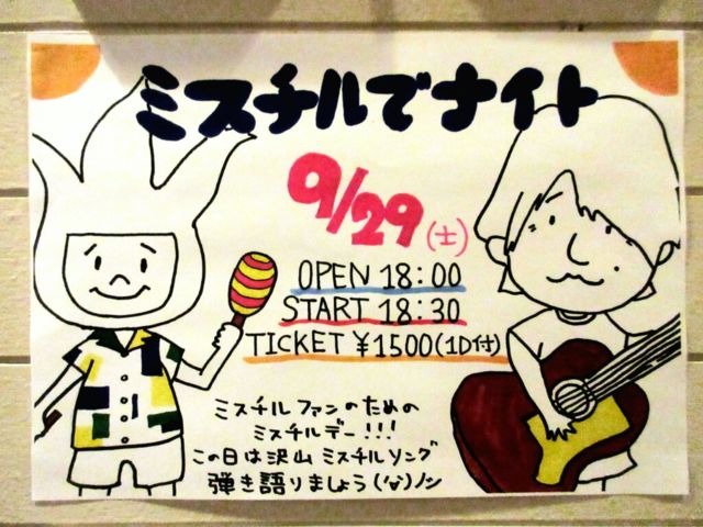 はじめまして☆ミ 愛知県小牧市・岩倉市を中心にまちづくりや市民活動をおこなっている、にまりと申します。 今回は市民活動ではないのですが、僕が音楽活動で度々お世話になっております飲食店さんがミスチルのイベントを催すという事で、その告知をさせて頂いております。 ミスチルの生演奏ライブイベントで、店長さん・スタッフさん・常連さん共々で演奏したり歌ったり、お客さんともセッションしたり自由に楽しんでいただけるイベントです♪ 今なら曲のリクエストもまだ受け付けております! 弾き語りやセッションしたい方 生演奏で