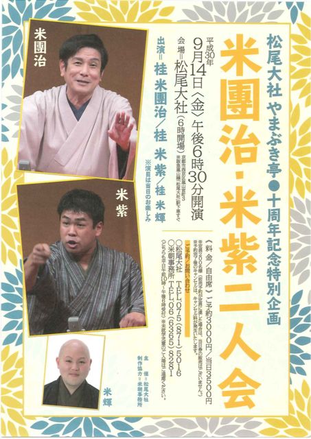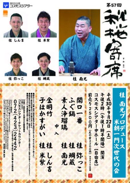 ※ ●印と★印は落語会・イベント、▲は演劇公演、■印はテレビ・ラジオ等のメディア出演情報です。 ※ ★印の落語会は、当ページからでもご予約戴けます。下のコメント欄に、日時と会の名称、お名前(ハンドルネームも可)をご記入の上、お申し込み下さい。 ※情報の中には、完売になってしまっている会があるかも知れません。各お問い合わせ先にてご確認下さい。 ●9月1日(土) 『トリイ寄席 九月席 トリイホールも“彦八”のお祭り気分で大賑わい!』 ‘千日前・トリイホール(大阪メトロ御堂筋線「なんば」駅/堺筋線・千日前線「日本橋