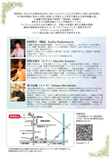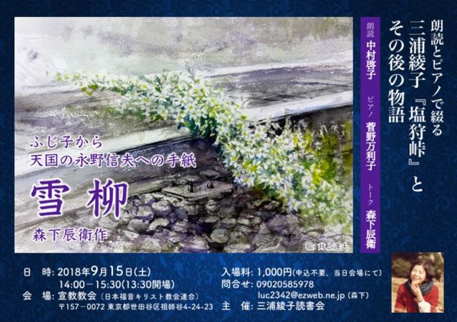 ¡Ú»°±º°½»ÒÆÉ½ñ²ñ¤«¤é9·î¤ÎÆÃÊ̽¸²ñ¤Î¤ªÃΤ餻 ¡¡¤½¤Î2¡Û 2018ǯ9·î¤ÏÆÃÊ̤ʽ¸²ñ¤¬3¤ÄͽÄꤵ¤ì¤Æ¤¤¤Þ¤¹¡£¥«¥ì¥ó¥À¡¼½ç¤Ë¤´¾Ò²ð¤·¤Æ¤æ¤¤Þ¤¹¡£ ¤³¤Î½¸²ñ¤âÅìµþ¤Ç³«ºÅ¤µ¤ì¤Þ¤¹¤Î¤Ç¡¢´ØÅìÃÏÊý¤ÎÊý¤ÏÀ§Èó¤´»²²Ã¤¯¤À¤µ¤¤¡ª¡ª ϯÆÉ¤¬ÃæÂ¼·¼»Ò¤µ¤ó ¥Ô¥¢¥Î¤Ï¿ûÌîËüÍø»Ò¤µ¤ó ¤³¤ì¤Ïʹ¤Æ¨¤¬¤»¤Ê¤¤¤Ç¤¹¤è¡ª¡ª ¡ãÀãÌø¡¡¤Õ¤¸»Ò¤«¤éÅ·¹ñ¤Î±ÊÌî¿®É×¤Ø¤Î¼ê»æ¡ä ¡¡¡¡¡¡¡¡Ï¯ÆÉ¤È¥Ô¥¢¥Î¤ÇÄÖ¤ë ¡¡¡¡¡¡¡¡»°±º°½»Ò¡Ø±ö¼íƽ¡Ù¤È¡¡ ¡¡¡¡¡¡ ¡¡¤½¤Î¸å¤Îʪ¸ì¡¡ Æü»þ¡§2018ǯ9·î15Æü¡ÊÅÚ¡Ë14:00¡Ý15:30(13:30³«¾ì) ²ñ¾ì¡§Àë¶µ¶µ²ñ¡ÊÆüËÜÊ¡²»¥¥ê¥¹¥È¶µ²ñÏ¢¹ç¡Ë ¢©
